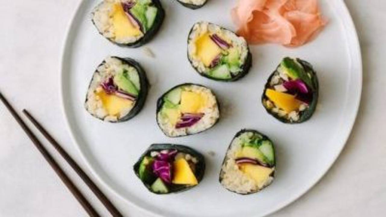 Easy, healthy, and grain-free, these vegan avocado cucumber sushi rolls with cauliflower rice and mango make a fresh, colorful lunch, dinner, or make-ahead meal.