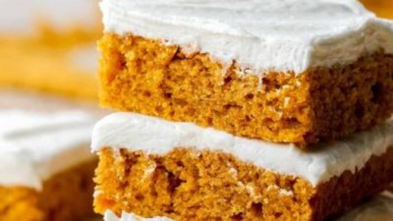 Easy vegan pumpkin cake baked in a sheet pan, topped with creamy vegan frosting. Fluffy, spiced, and perfect for fall treats or feeding a crowd.